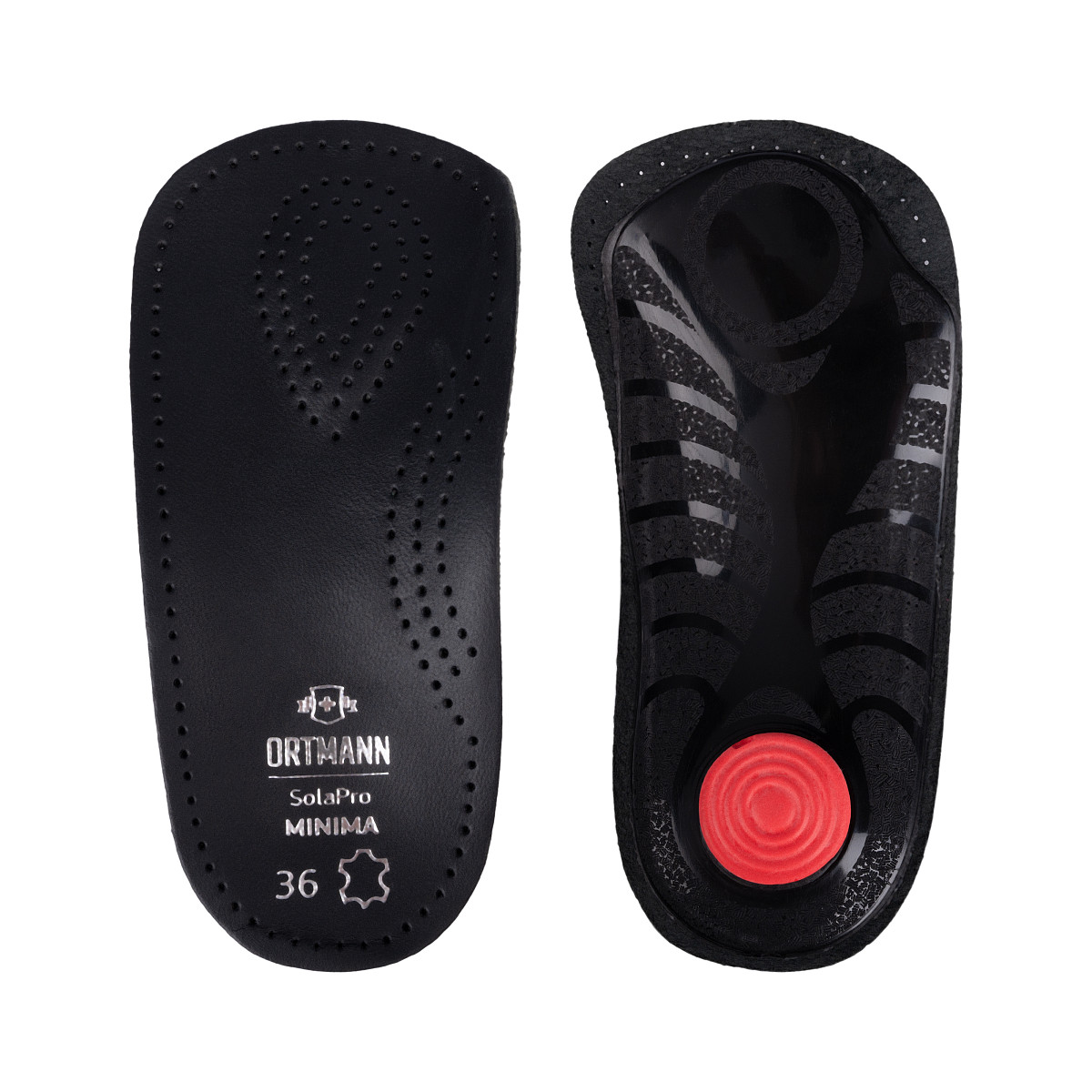 Кожаные ортопедические каркасные полустельки ORTMANN MINIMA станут незаменимым решением на каждый день для профилактики и лечения плоскостопия на начальных этапах развития. Это универсальная модель за счёт своей формы отлично подойдет для обуви с открытым мысом. При этом стелька сохранила все важные характеристики, необходимые для правильной разгрузки стопы на протяжении всего дня. Метатарзальный пелот равномерно распределяет нагрузку переднего отдела стопы, что особо значимо в том числе при поперечном плоскостопии и его осложнениях – «косточки» большого пальца стопы. Каркас продольного свода защищает и поддерживает стопу в правильном положении, а пяточный амортизатор снижает ударную нагрузку на пяточную область. Таким образом, вес тела при статической или динамической нагрузке равномерно распределяется по всей стопе.